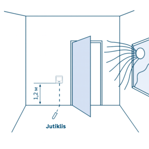 (saula, radiatoriai ir pan.), šaltas oras nuo durų ar langų, arba kur gali būti iškreipiama reali patalpos temperatūra.